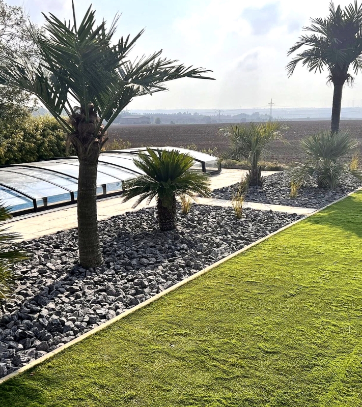 Mit einer Gesamthöhe von ca. 340 – 350 cm sind diese Palmen ein absoluter Blickfang – ideal für: