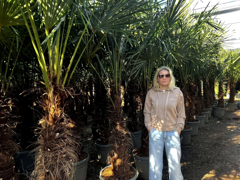 Dank unserer langjährigen Zusammenarbeit mit spezialisierten spanischen Baumschulen können wir Ihnen gleichbleibend hohe Qualität auf professionellem Niveau anbieten – kräftige Stämme, vitales Wurzelwerk und gesunde Blattfächer.