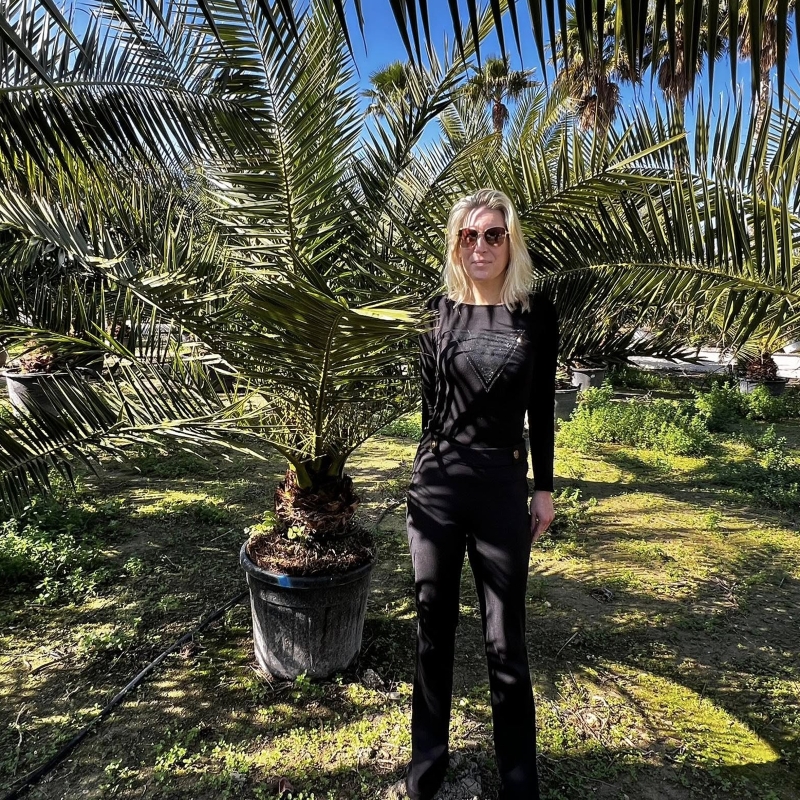Dank ihres kräftigen Wuchses, der majestätischen Wedel und des markanten Stammes zählt sie zu den beliebtesten Solitärpalmen im mediterranen Stil.
