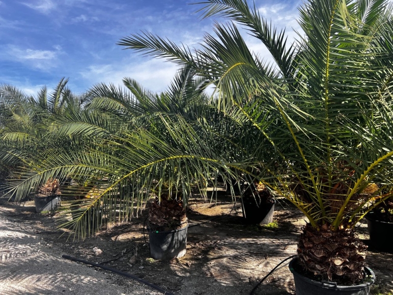 Die Kanarische Dattelpalme (Phoenix canariensis) zählt zu den eindrucksvollsten Palmen überhaupt. Mit einer Stammlänge von ca. 60–80 cm und einer Gesamthöhe von rund 400–500 cm handelt es sich um ein außergewöhnlich großes, repräsentatives Premium-Exemplar, das sofort für mediterranes Luxus-Ambiente sorgt.